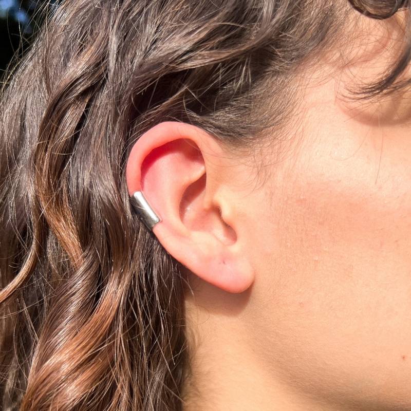 Earcuff en plata 925 con diseño limpio y orgánico que abraza la oreja con carácter. Un statement sutil y sofisticado que no requiere perforación.